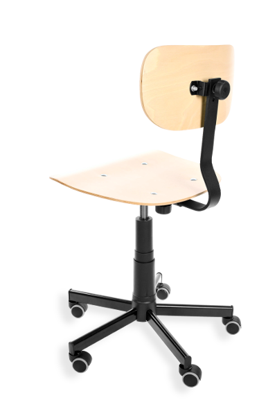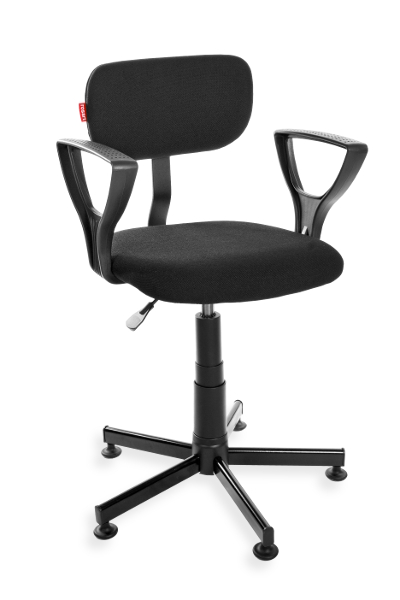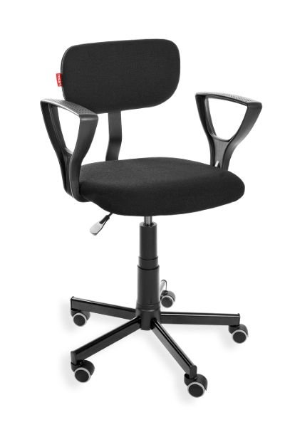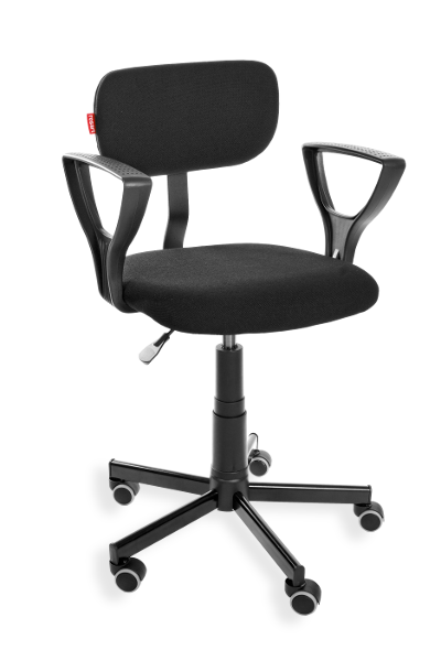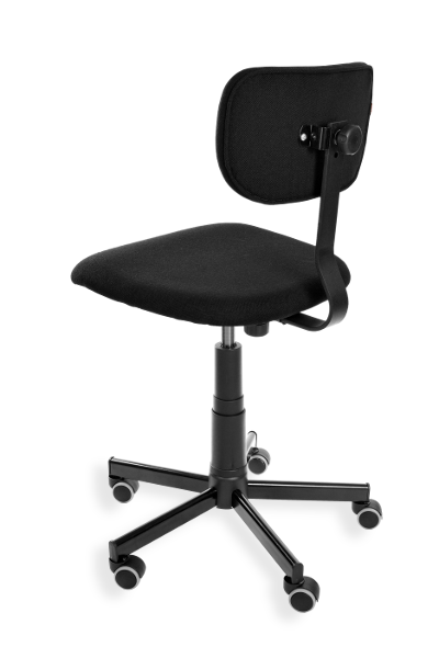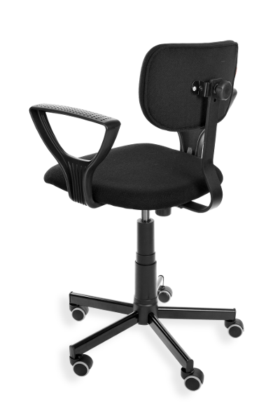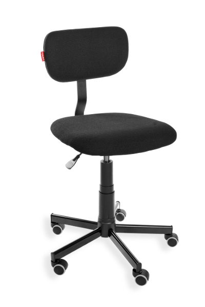 This is an ergonomic swivel chair with adjustable height (a gas spring) and adjustable seat depth. Material: fabric. Option: castors