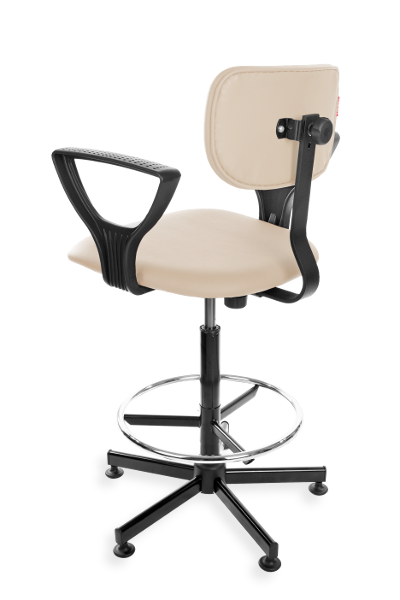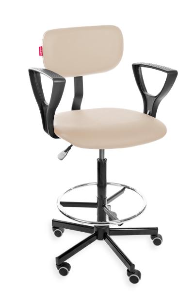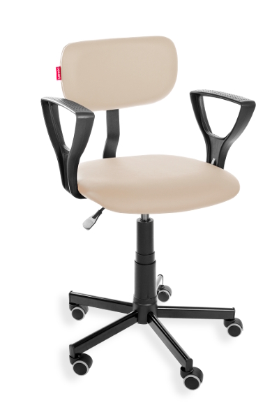This is an ergonomic swivel chair with adjustable height (a gas spring) and adjustable seat depth. Material: synthetic PU leather. Option: feetrest and castors
